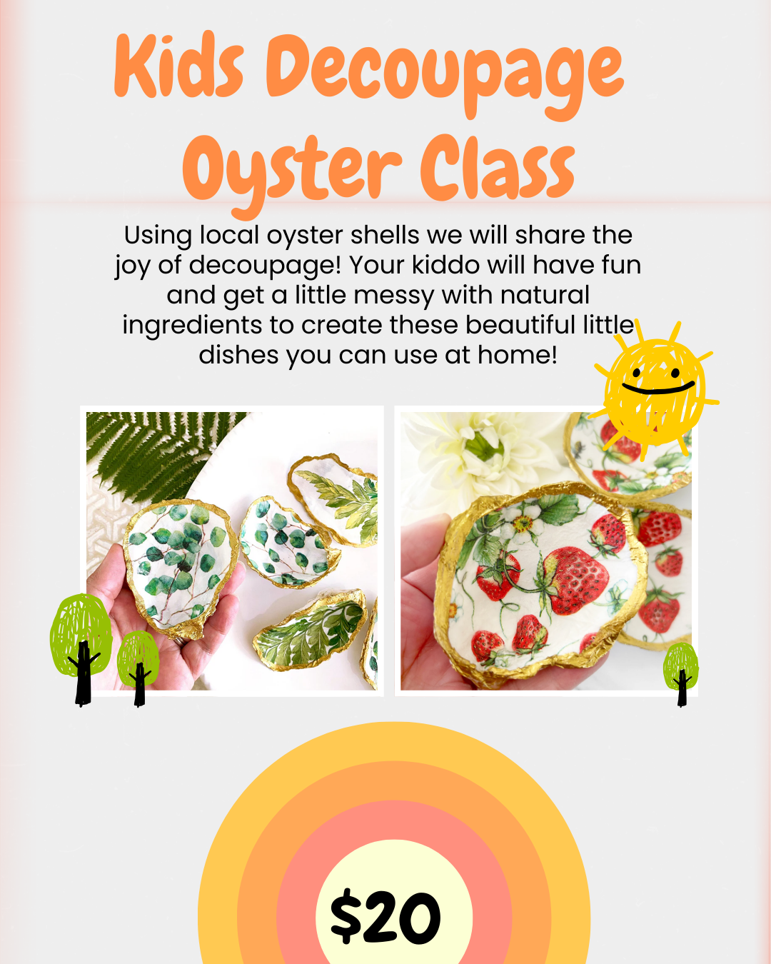 Drop by the taproom between the hours of 10:00am & 2:00pm for fun artsy workshop with educator and co-owner Jess! We gathered and cleaned old oyster shells from a friends’s property and will be using the french method of decoupage to create these adorable trinket holders. All materials are non-toxic and recycled! Make a mess in our barn and enjoy not cleaning it up 🙂