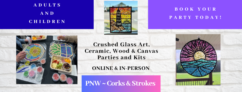 When you purchase your ticket, youâll select your design and project size from our current collection of laser-cut wood frames. With a gorgeous array of shimmering, hand-dyed crushed glass colors to choose from, youâll create a stunning wall art or suncatcher sealed with our magical (and fume-free!) potion for a sparkling finish. đâ¨