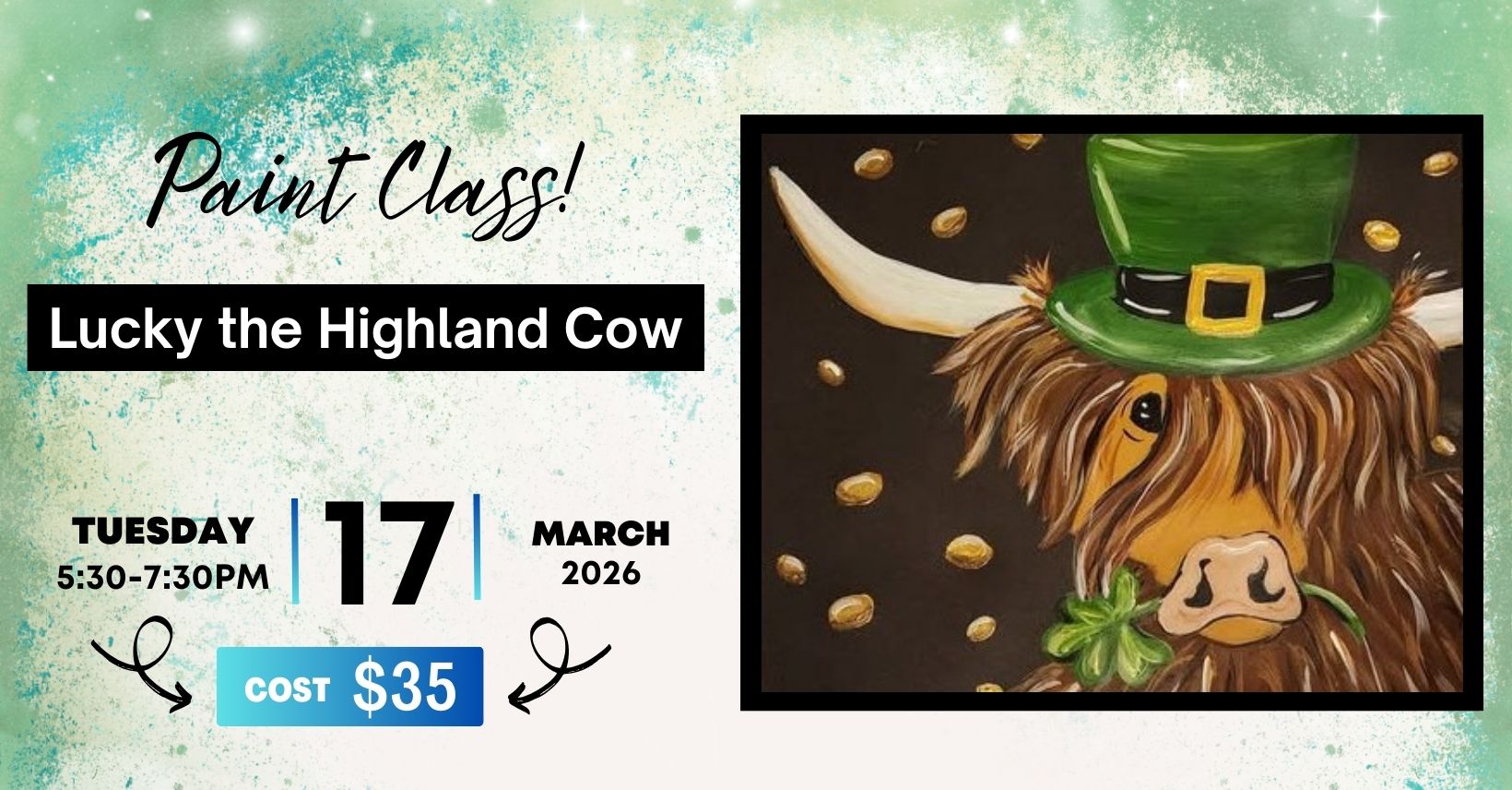 Join us in the loft of the brew barn to paint Lucky the Highland Cow! Whether you’re a seasoned artist or a beginner, this event is designed for all levels of experience. Unleash your inner artist, discover the joy of painting. Kids are also welcome to pain at this event.