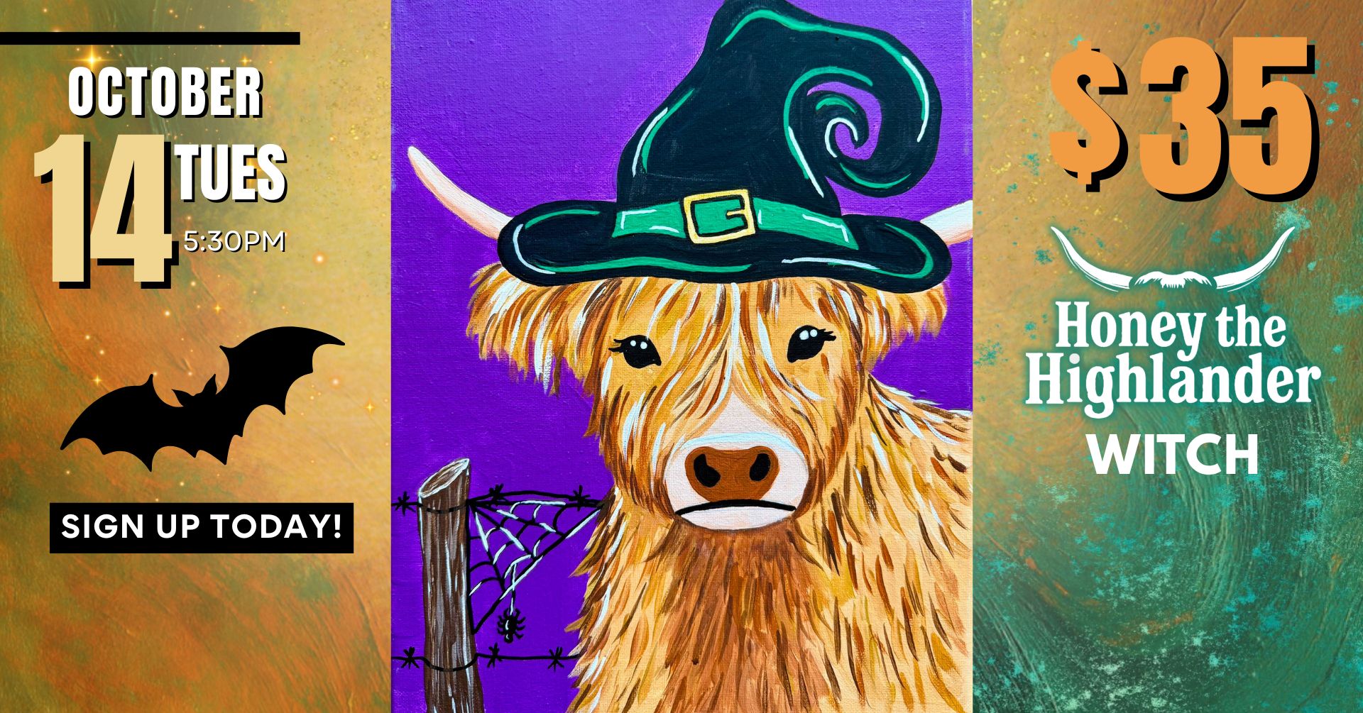 Join us at Yoked Farmhouse & Brewery to paint this, Honey the Highlander Witch! Whether you’re a seasoned artist or a beginner, this event is designed for all levels of experience. Unleash your inner artist, discover the joy of painting. Kids are also welcome to paint at this event.